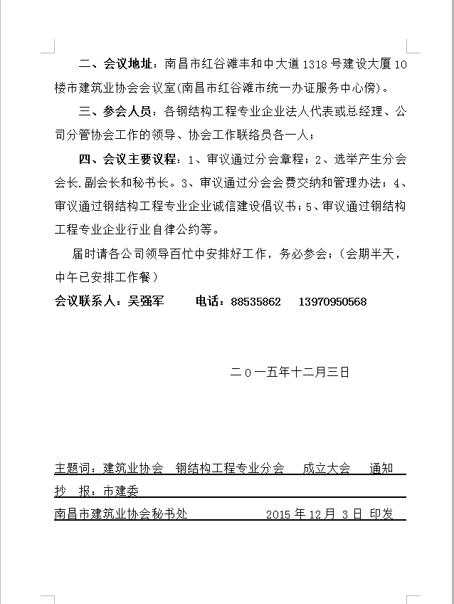 關(guān)于召開(kāi)南昌市建筑業(yè)協(xié)會(huì)鋼結(jié)構(gòu)工程專(zhuān)業(yè)分會(huì)成立大會(huì)的通知